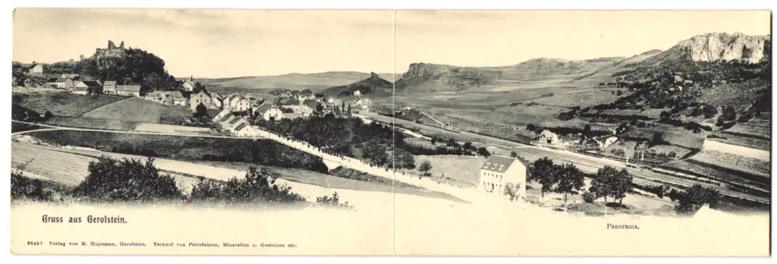 Klapp-AK Gerolstein, Ortspanorama mit Burgruine