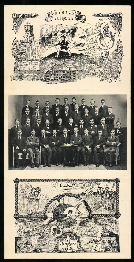 Klapp-AK Neuhaldensleben, Seminar-Absolvia 1919, Bergfest, Absolventen