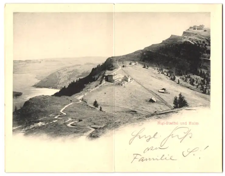 Klapp-AK Rigi-Staffel, Ortsansicht mit Rigi-Kulm, Panoramablick