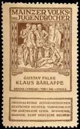 Gustav Falke, Herausgeber: Wilhelm Kotzde, Reihe: Mainzer Volks- und Jugendbücher, Größe/Zustand: 6x3 , guter Zustand, Original alte Reklamemarke die seinerzeit für die Werbung benutzt wurde