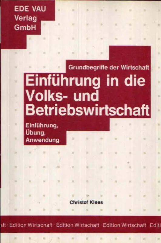 Einführung in die Volks- und Betriebswirtschaft; Christof Klees; Grundbegriffe der Wirtschaft; Einführung; Übung; Anwendung; Wirtschaft; Rechnungswesen