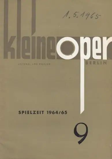 Kleine Oper Berlin. - Intendanz Udo Esselun. - Lortzing, Albert: Der Wildschütz. Spielzeit 1964 / 1965. Programmhefte der Kleinen Oper Berlin, Heft 9. Insz.: Udo Esselun, musikalische Leitung: Gerhard Hüttig, mit u.a.: Walter Tschernich, Marianne Dorsch,