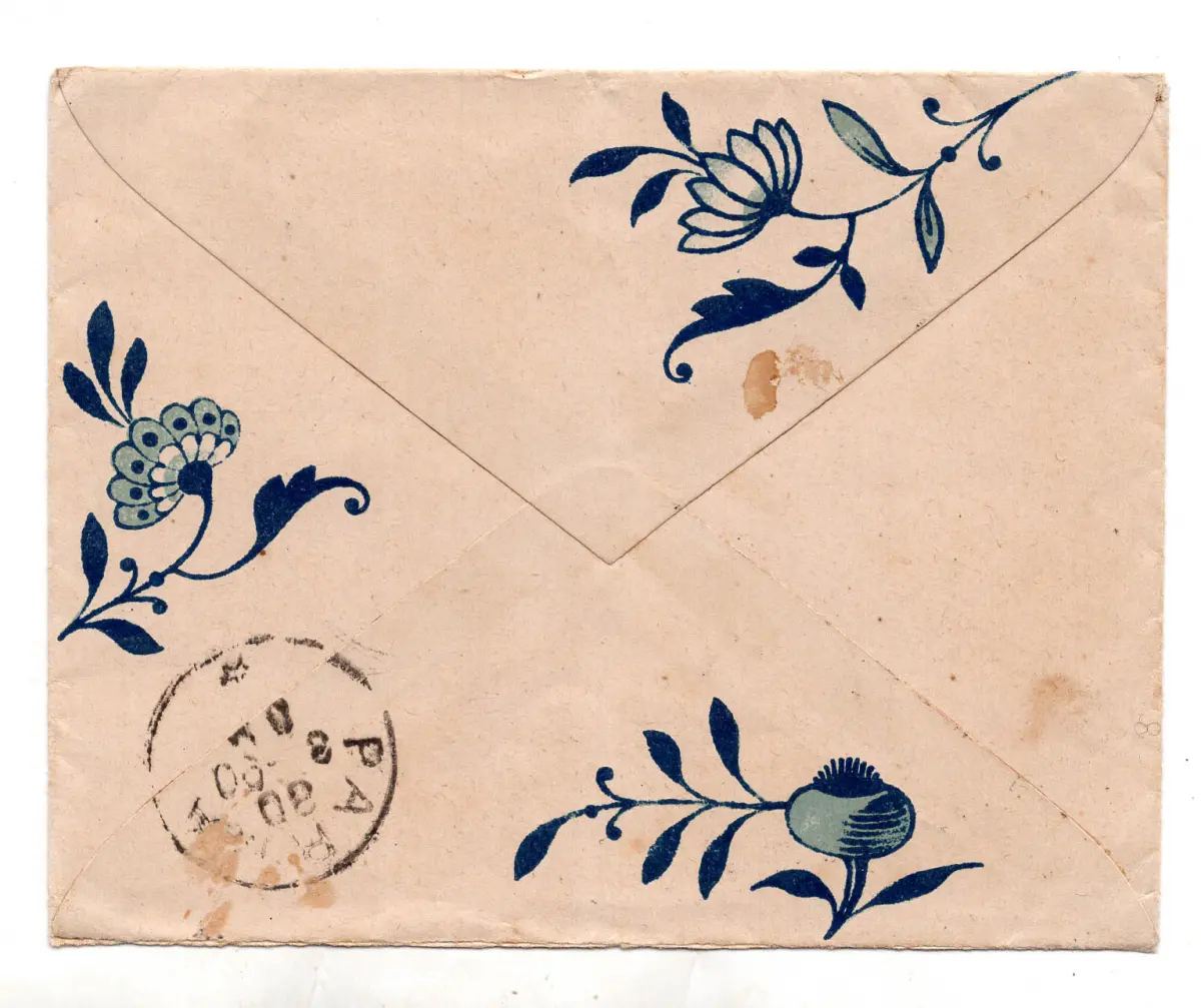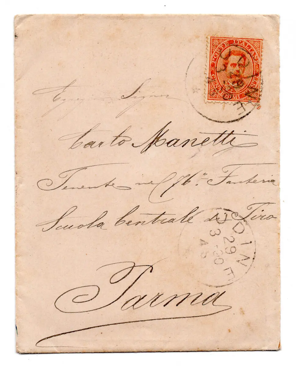 - Valentina - Kleiner Umschlag mit hübschem Blumendekor auf der Rückseite (in blauem Schiefer), der am 29.3.1900 von Udine nach Parma gereist ist, frankiert mit Cent. 20 Umberto (Nr. 39) - Uncommon Nr.118/19