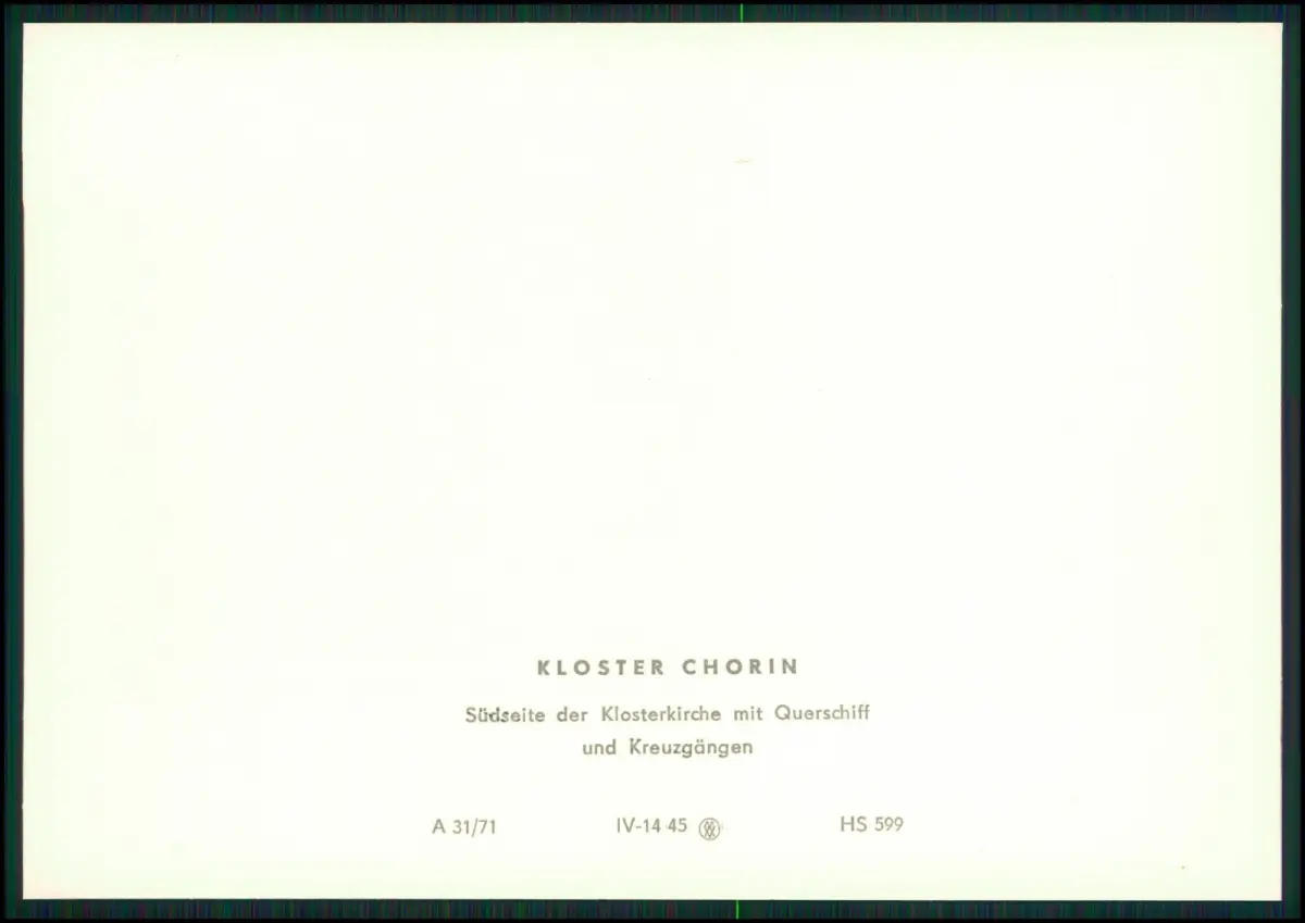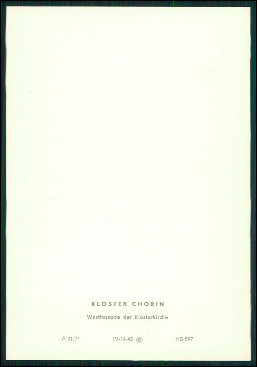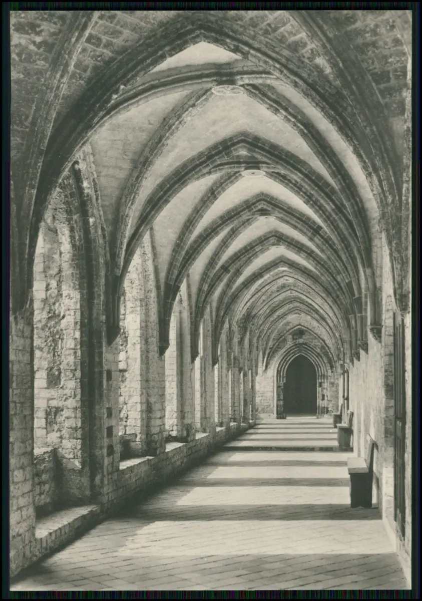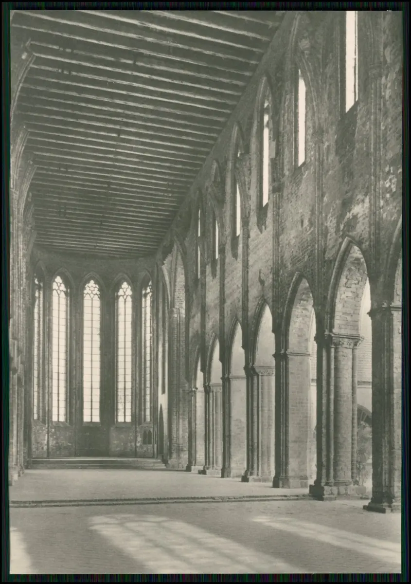 Kloster Chorin DDR Mappe 1971 Fotos Klaus G. Beyer Leipzig Prof. Dr. Johannes Jahn 15x10 cm Beschreibung: Motivübersicht: Westfassade der Klosterkirche Inneres der Klosterkirche nach Osten Südseite der Klosterkirche mit Querschiff und Kreuzgängen Östlicher Kreuzgang Westfront des Pfortenhauses und Nordfront des Brauhauses Der Fürstensaal Küchen- und Brauhaus von Süden Klosterküche Das Kloster Chorin im Land Brandenburg zählt zu den bedeutendsten Bauwerken der norddeutschen Backsteingotik Es wurde im 13. Jahrhundert von Zisterziensermönchen gegründet und gilt als wichtiges Zeugnis mittelalterlicher Baukunst. Rückseite: Originale Verlagsangaben, Preisaufdruck (3 Mark DDR) und Seriennummer.