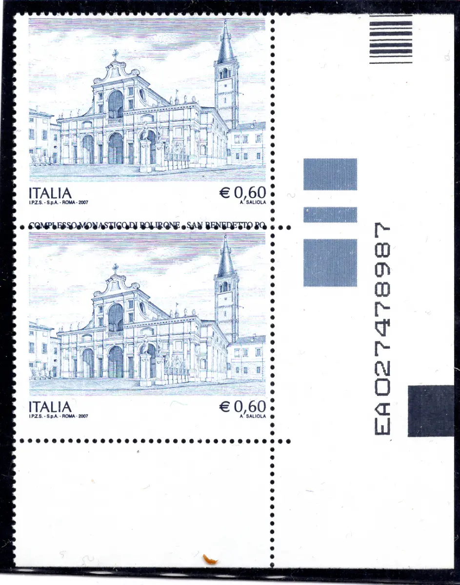 Klosterkomplex Polierone völlig fehlen die Beschriftungen oben ** MNH - 2007 - Klosterkomplex Polierone Nr. 2972 Paar a. von f., davon ein Exemplar völlig fehlt die Beschriftungen oben und eines mit den Beschriftungen unten statt oben aufgrund starker Verschiebung der Verzahnung - nur wenige bekannte Exemplare mit dieser Eigenschaft Nr. 683/18