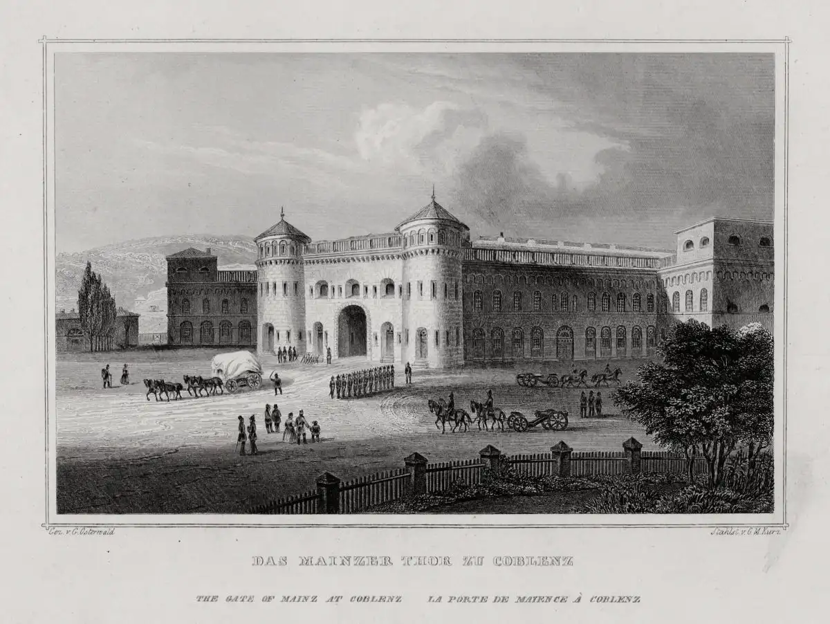 Koblenz. Mainzer Tor Original Stahlstich Kurz 1870