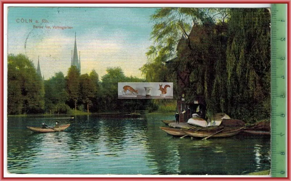 Köln - Partie im Volksgarten -1912-, Verlag: Dr. Trenkler Co., Leipzig, POSTKARTE, mit Frankatur, mit Stempel, DÜSSELDORF 5.9.12, Erhaltung: I-II, Karte wird in Klarsichthülle verschickt.