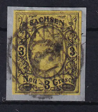 König Johann I 3 Ngr. Auf Briefstückmit Nummernstempel 3 (= Dresden-Neustadt
