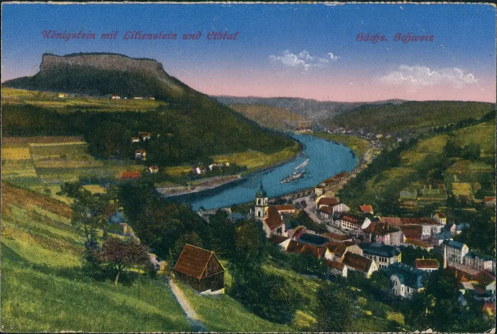 Königstein (Sächsische Schweiz) Lilienstein, Elbe, Elbtal sächsiche Schweiz 1910