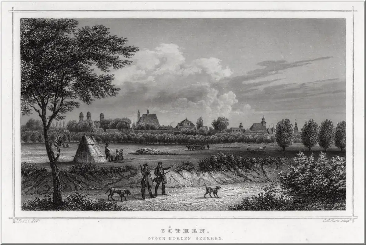 Köthen, Ansicht gegen Norden. echter Stahlstich, Kurz um 1850