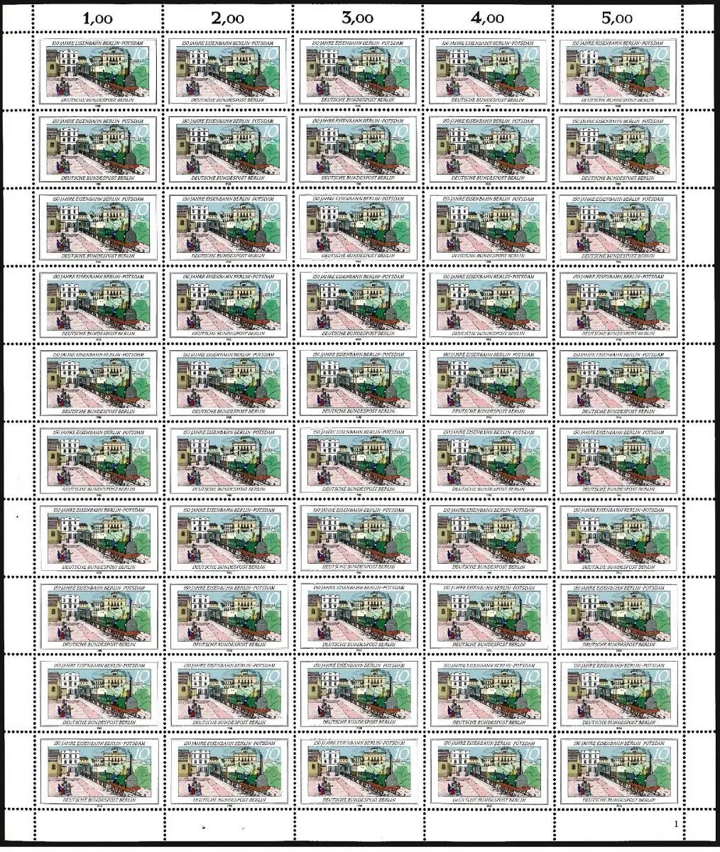 Kompletter Bogen 822 Eisenbahn FN 1 mit PLF I Punkt im Baum, Feld 50 **
