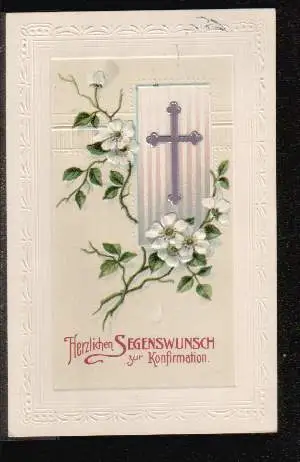 Konfirmation. Herzlichen Segenswunsch zur .Litho und Prägedruck - Gelaufen 1912. (Konfirmation, Glückwunsch)