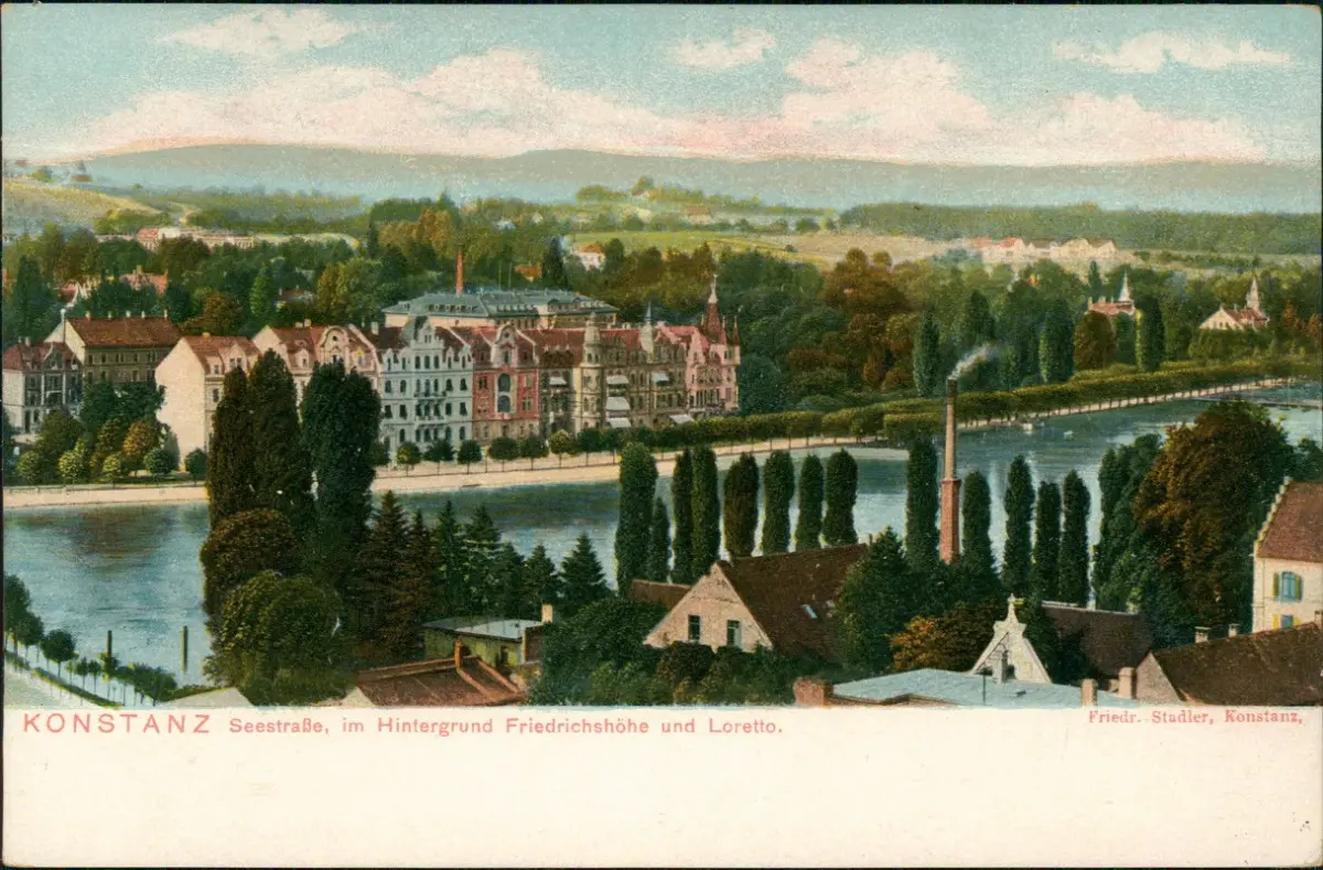 Konstanz Seestraße, im Hintergrund Friedrichshöhe und Loretto. 1909