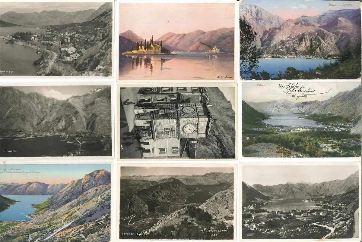 Bemerkungen: Konvolut von 19, teils farbigen, Postkarten u. Photokarten mit Ansichten von Kotor (Cattaro). Wenige gelaufen mit Briefmarken und Stempel.
