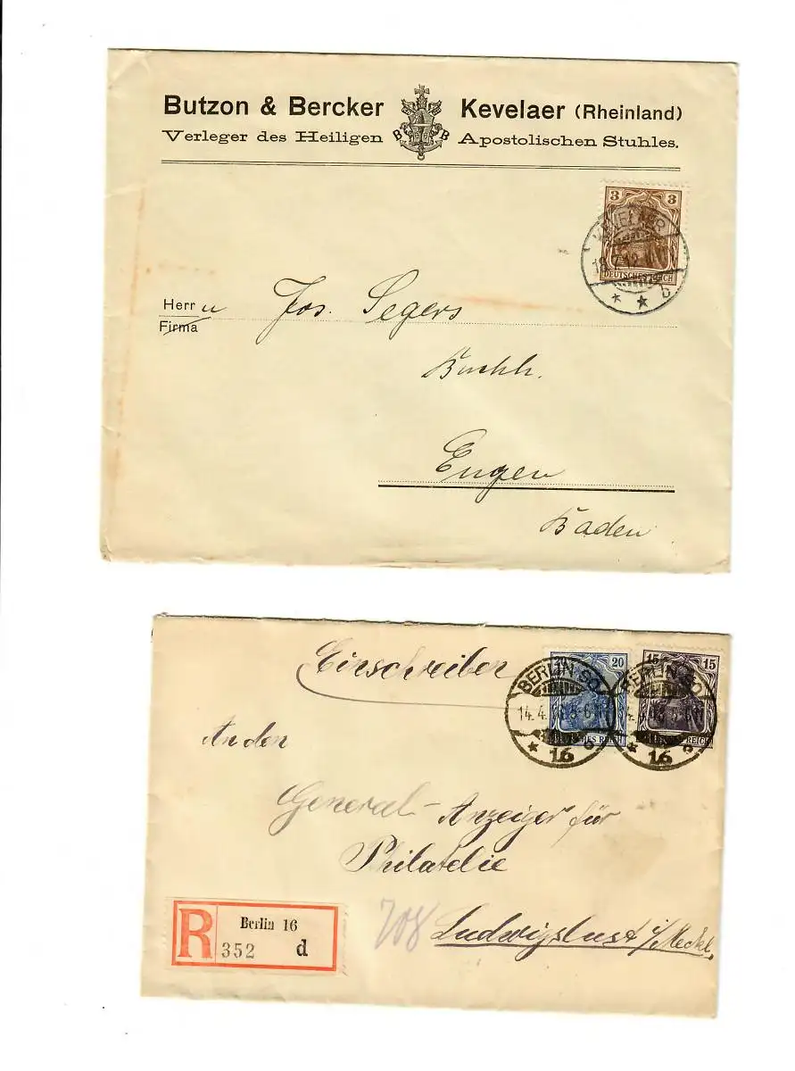 Ein Brief Verleger des Heiligen Apostolischen Stuhles mit rückseitger Abbildung der Firma in Kevelaer/Rheinland, eine Karte mit Zensurstempel Metz,
