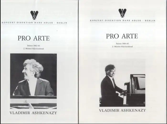 Konzert-Direktion Hans Adler, Berlin. - Vladimir Ashkenazy: Konvolut mit 2 Programmzetteln: Vladimir Ashkenazy in der Berliner Philharmonie, Meister-Klavierabend 1983 und 1984. - Pro Arte. - Mit Werken von Beethoven, Schubert und Schumann.