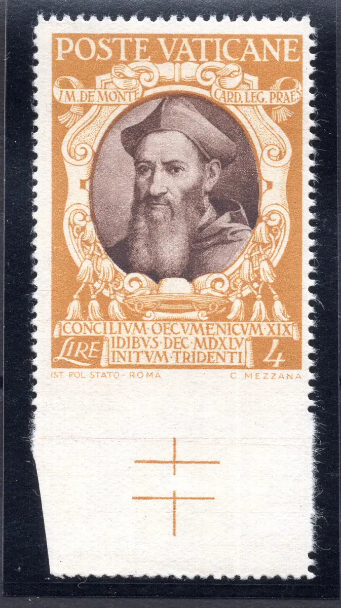 MNH - Vollgummi - - Konzil von Trient Lire 4 Nr. 119e, ungezähnt am unteren Blattrand, neu perfekt mit Vollgummi Cod. 2681/WEB