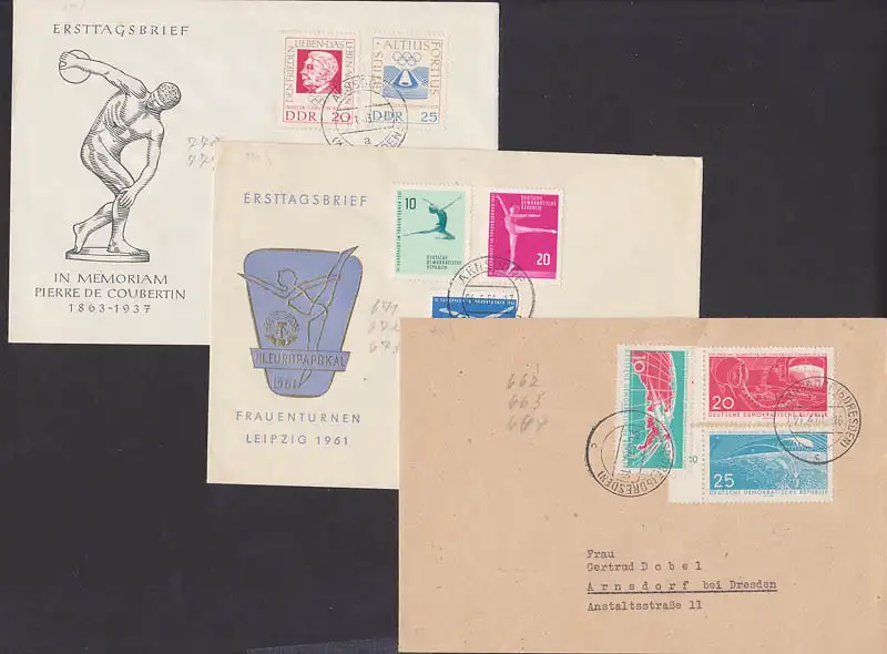 Kosmos DDR Weltraumkapsel Juri Gagarin de Coubertin Frauenturnen, Schwebebalken Arnsdorf b Dresden