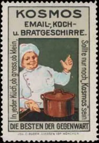 Email-, Koch- und Bratgeschirre, Küche, Größe/Zustand: 5x4 , guter Zustand, Original alte Reklamemarke die seinerzeit für die Werbung benutzt wurde
