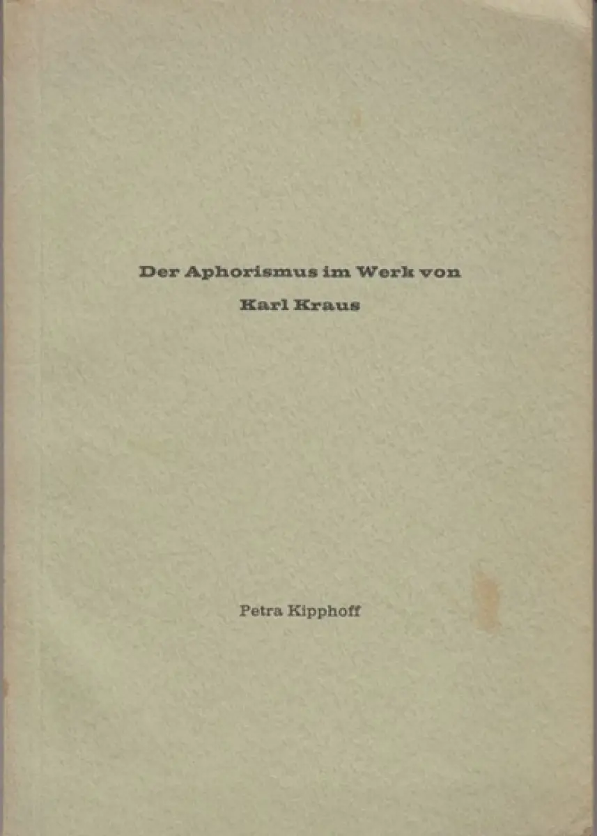 Kraus, Karl. - Petra Kipphoff: Der Aphorismus im Werk von Karl Kraus. Inaugural-Dissertation.