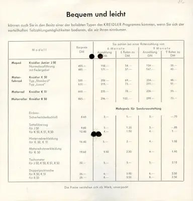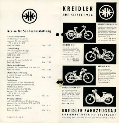 Kreidler Preisliste 1954