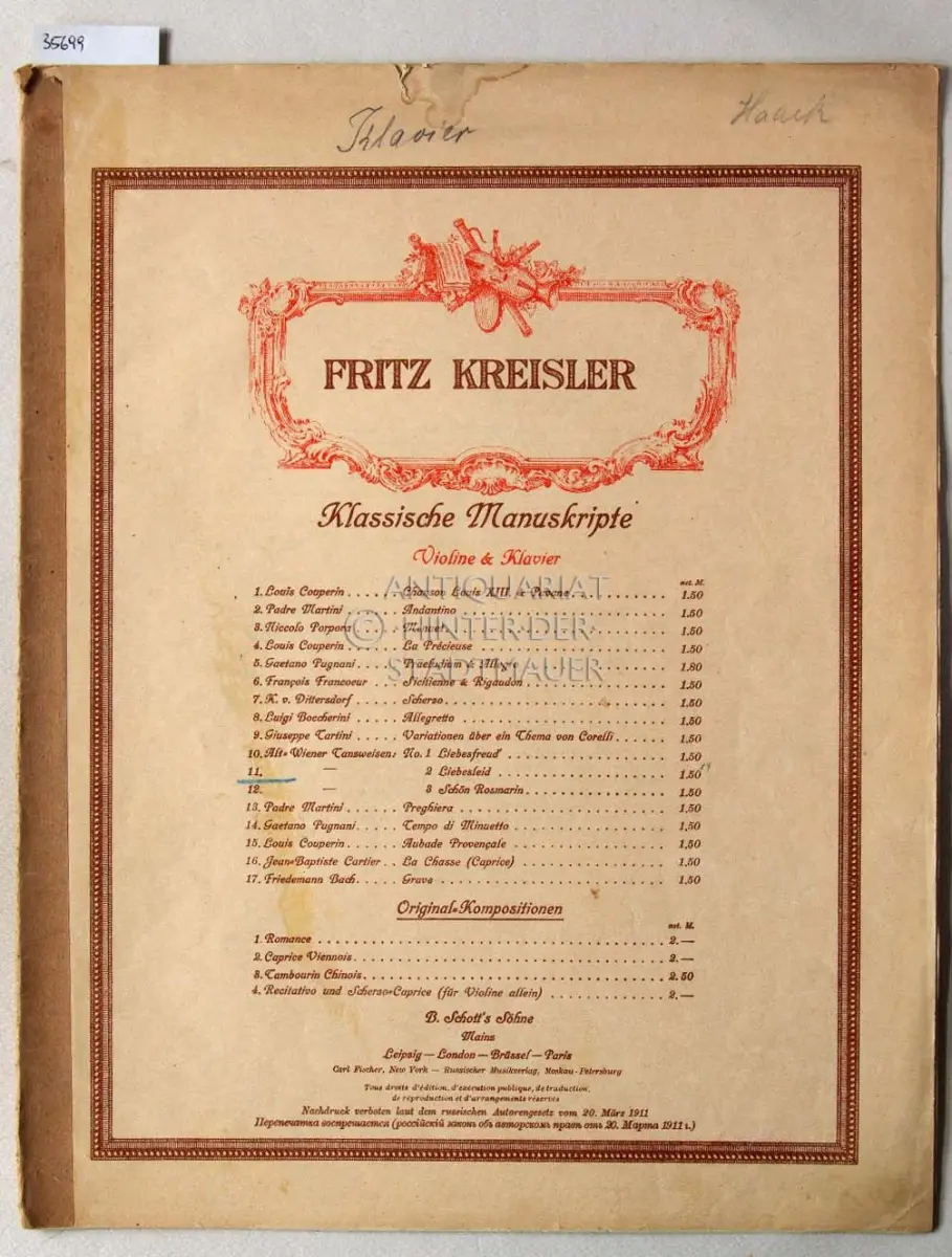 Kreisler, Fritz: Klassische Manuskripte Violine und Klavier, 11. Alt-Wiener Tanzweisen, No. 2 Liebesleid.