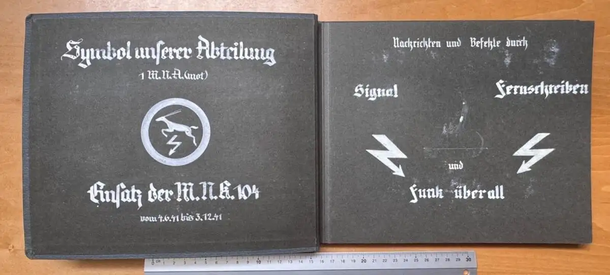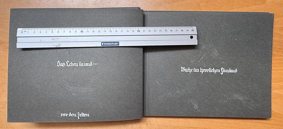 Kriegs-Fotoalbum ohne Fotos - gestickt Wappen Finnland - Funk 1 M.N.A. mot 104
