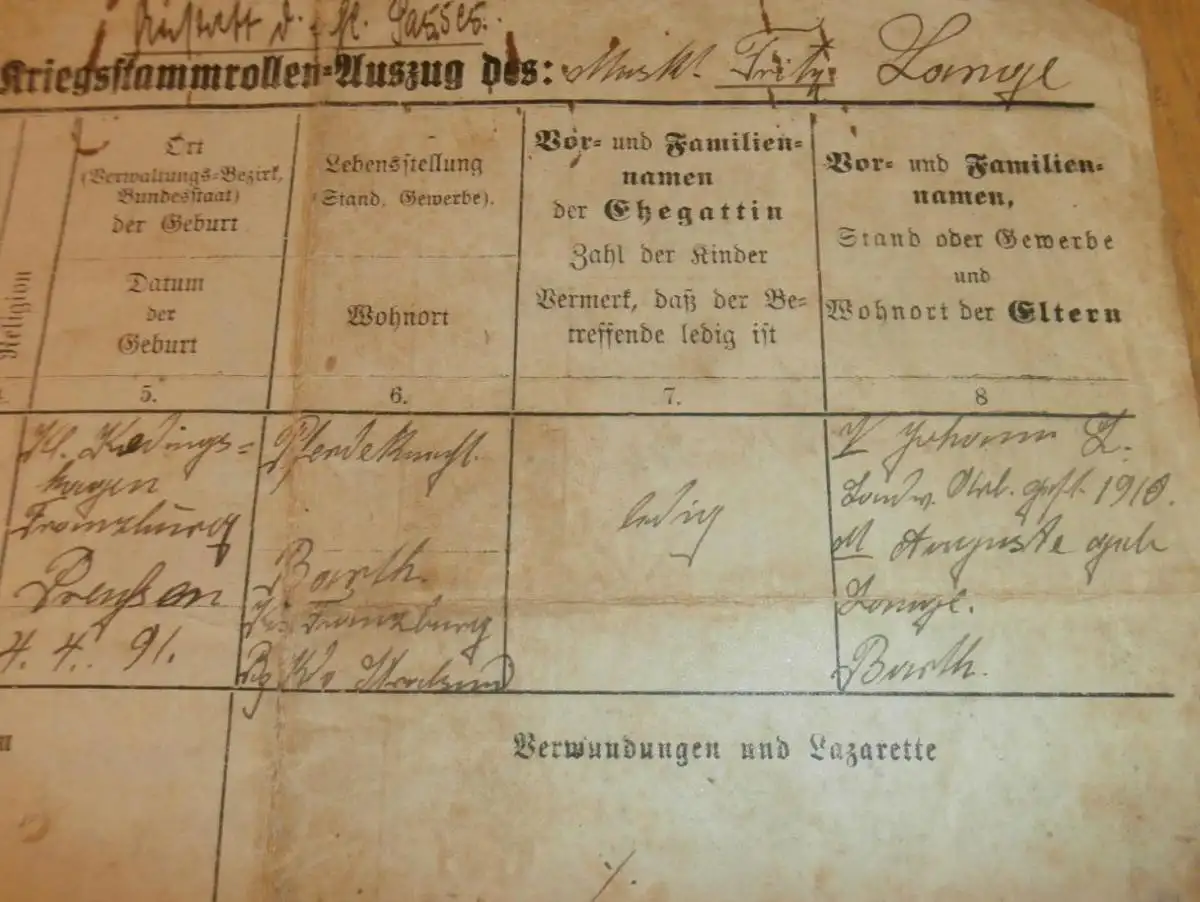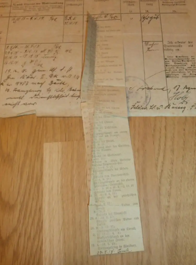 Kriegs-Stammrolle mit Nachweis der Schlachten , Fritz Lange in Barth i.M., 1. WK 1918 , Eisernes Kreuz , Mecklenburg !!