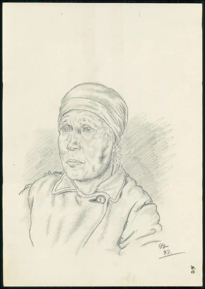 Kriegs-Zeichnung 30x21cm - Chris Porschen sign. - Volkstypen Russland Polen 1943