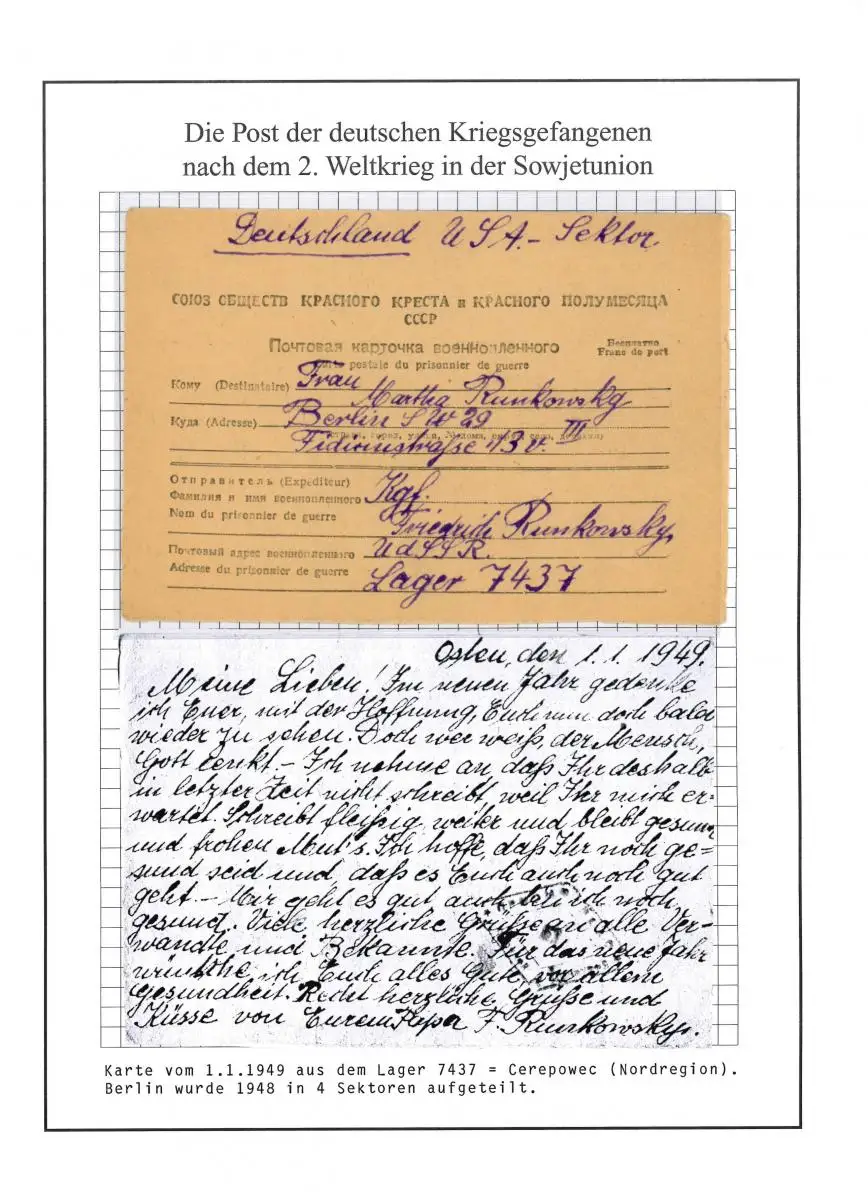 Kriegsgefangenenpost Lager 7437 Tscherepowez UdSSR Berlin (US Sektor) 1.1.1949