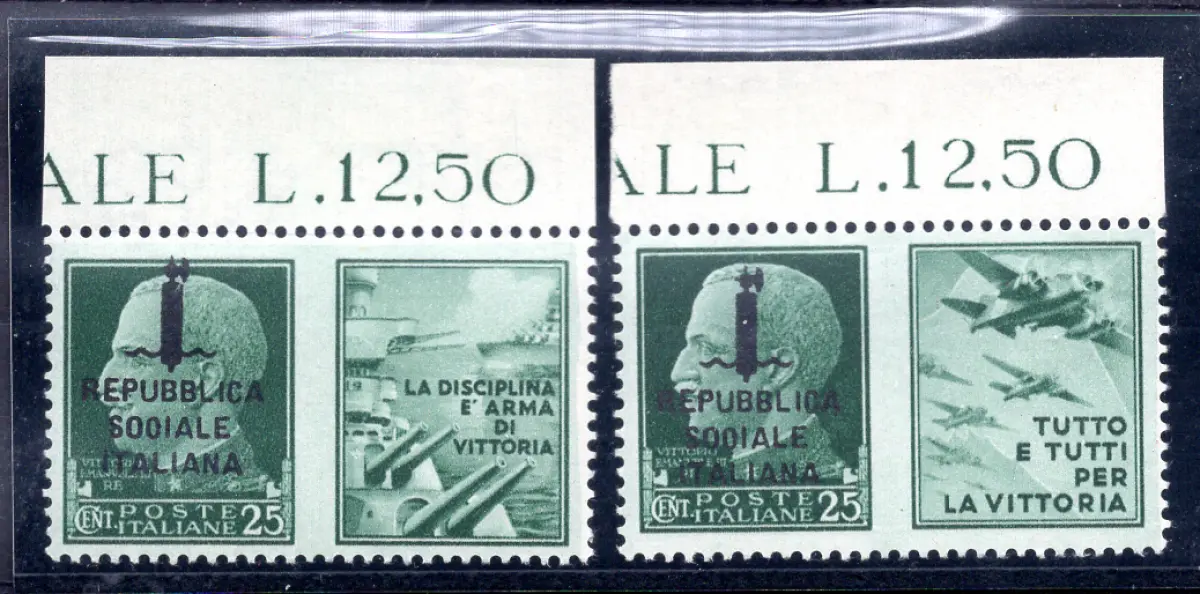 MNH - VOLLGUMMI - Kriegspropaganda Cent. 25 n. 25k und 27k die beiden bekannten Werte mit Tippfehler Sooiale neue perfekte Vollgummi Blattrand Katalog Euro140 Cod.2401/WEB