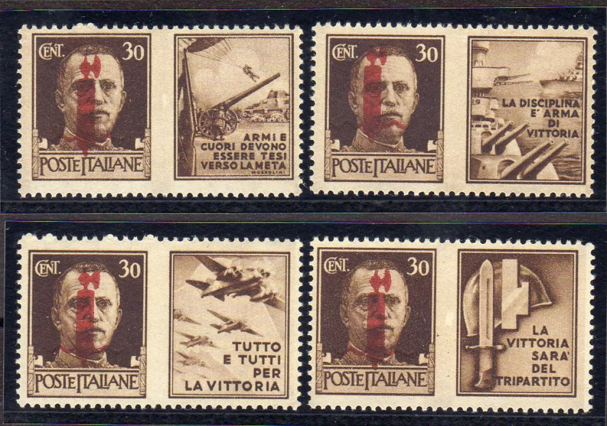 MNH Vollgummi - Kriegspropaganda Cent. 30 n. 29D/32D vier Werte mit rotbraunem Aufdruck - Schönes Set - Kat. euro 120 Cod. 221/15