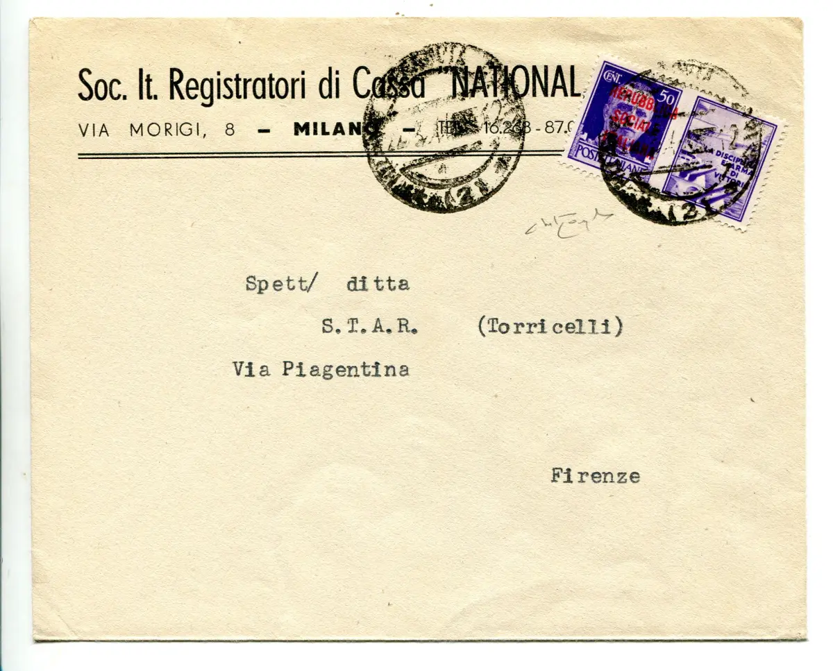 - Kriegspropaganda Cent. 50 Aufdrucke Nr. 33 isoliert auf Umschlag von Mailand nach Florenz am 22.3.44 - ohne Ann. Ankunft - Interessant - Ray. n. 672/A
