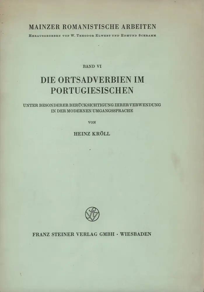 Kröll, Heinz: Die Ortsadverbien im Portugiesischen. Unter besonderer Berücksichtigung ihrer Verwendung in der modernen Umgangssprache. (Hrsg. v. W. Theodor Elwert u. Edmund Schramm).