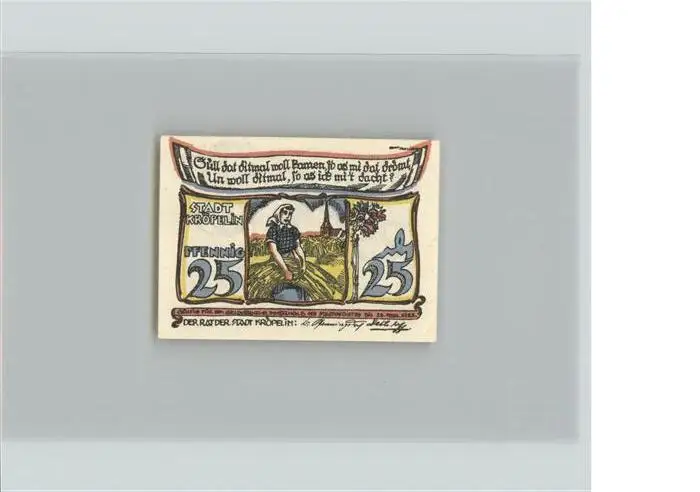 Kroepelin Kroepelin 1921-1965 Notgeldschein (keine Postkarte) Erhaltung siehe scans Notgeldschein (keine Postkarte) hz BBack