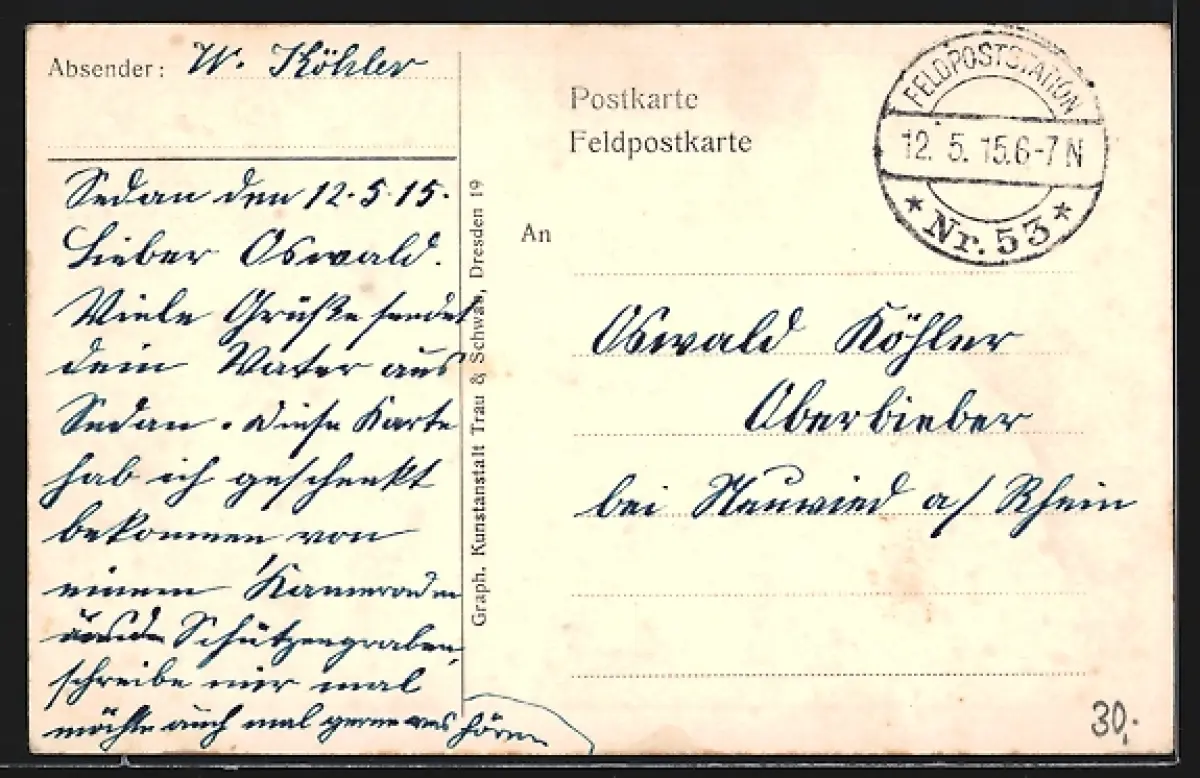 alte Ansichtskarte, gelaufen 1915, guter Zustand