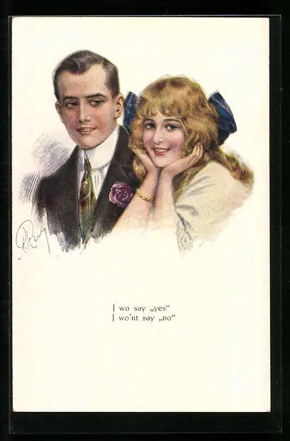 Künstler-AK A.Remy: Ich sag nicht Ja..., Fräulein mit einem Herrn