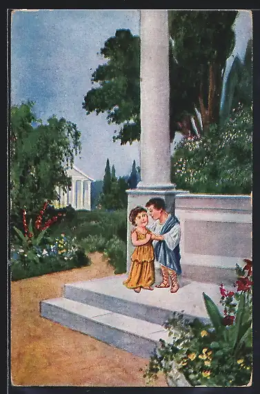 Künstler-AK Ad. Hoffmann: Zwei Kinder in griechischer Kleidung in einem Garten