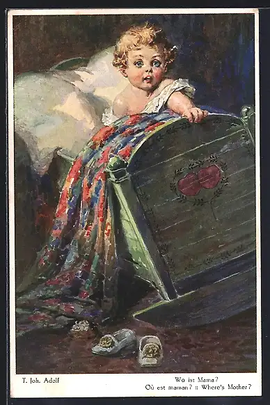 Künstler-AK Adolf (Jodolfi): Kind ruft in der Wiege, Wo ist Mama?