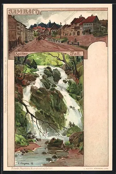 Künstler-AK Albert Stagura: Tambach / Dietharz, Blick in den Ort, Spitter Fall