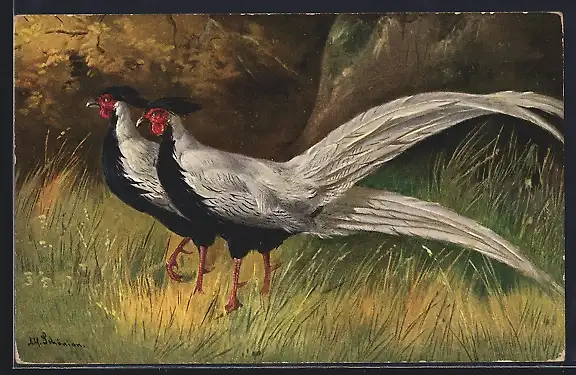 Künstler-AK Alfred Schönian: Zwei Silberfasane