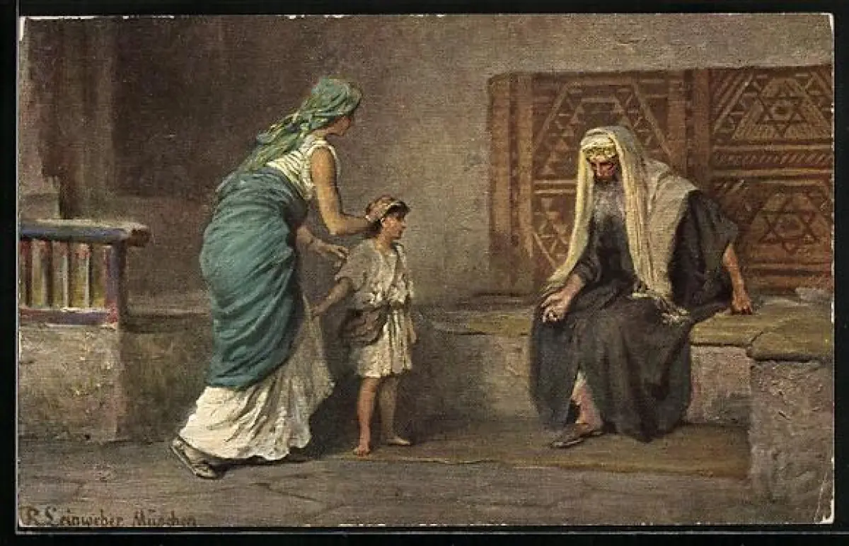 Künstler-AK Alttestamentliche Bilder, Hanna bringt Samuel zu Eli