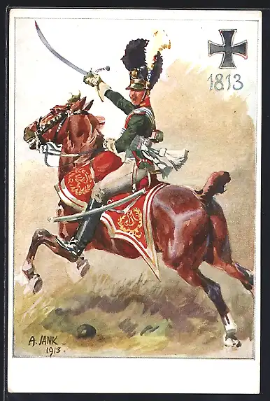 Künstler-AK Angelo Jank: Bayerischer Chevauleger reitet zum Angriff
