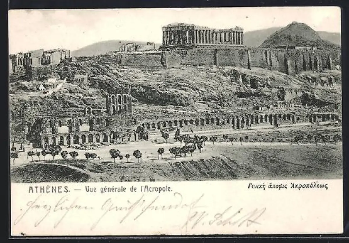 Künstler-AK Athènes, Vue générale de l`Acropole