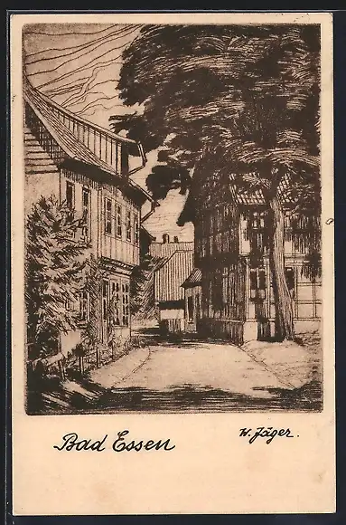 Künstler-AK Bad Essen, Zeichnung einer Strassenpartie