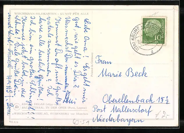 alte Ansichtskarte, gelaufen 1958, guter Zustand