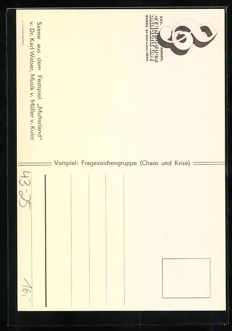 Künstler-AK Basel, XXV. Eidgen. Sängerfest 1935, Mutterland, Umzug mit Fragezeichen