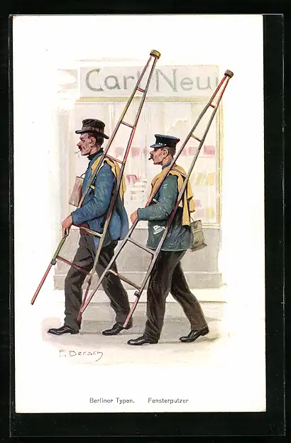Künstler-AK Berlin, Fensterputzer mit Leiter