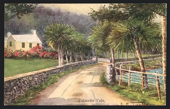 Künstler-AK Bermuda, Palmetto Vale mit Haus