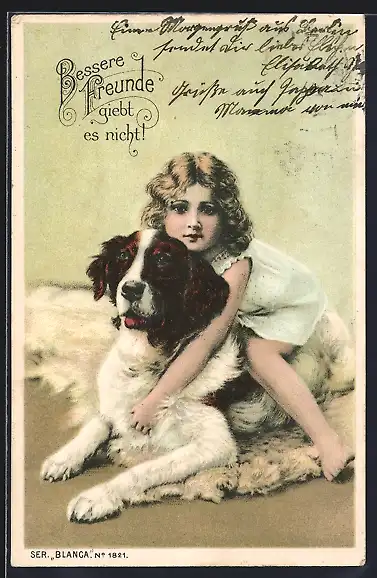 Künstler-AK Bessere Freunde gibt es nicht!, Mädchen auf dem Rücken einers Bernhardiners
